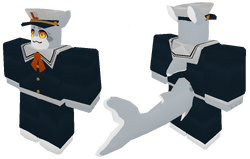 The Shork donning a naval cadet outfit complete with a white sailor's cap with the Laminax logo on the front. This costume still uses the V3.1R design for Shork, despite it being redesigned. | ||